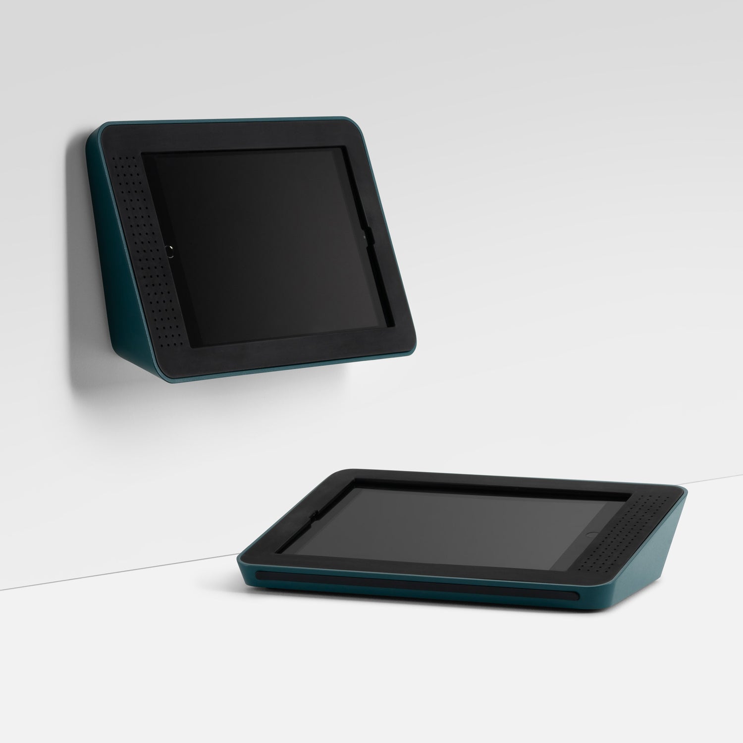 Link is compatible with all generations of the iPad 10.2 and the iPad 10.9 10th Gen, sitting freely on a counter, with its felt feet allowing you to slide it across the meeting table from one user to the other. Alternatively, Link can be mounted to a horizontal or vertical surface using the fixings provided. If you prefer a freestanding setup but are concerned about security, use a Kensington lock to tether Link to an anchor point.