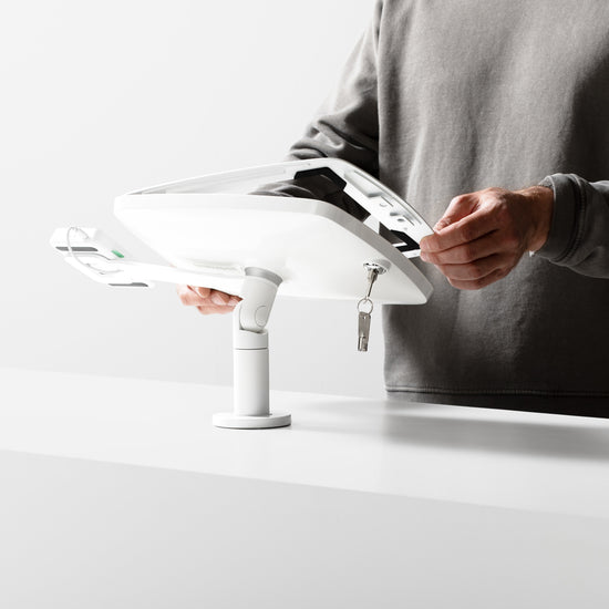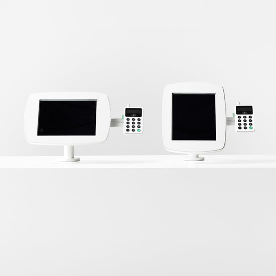 The Bouncepad Original Twist-Mini + Card Reader Mount is a secure, versatile, and stylish tablet and iPad mount designed for high-level counters in customer-facing environments.