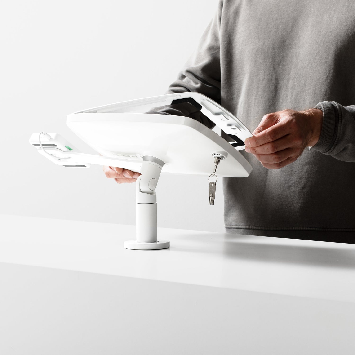 The robust lockable enclosure keeps your tablet secure while also concealing and routing power cables for a professional setup. Bulk orders include universal keys for easy lock management, and all Original Range models work with Apple, Samsung, and Microsoft tablets.