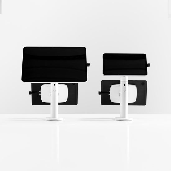As part of our Core Range, both tablets are secured using super-strong adhesive pads, delivering a sleek, minimalist design. The included 180-degree USB-C power cables keep your tablets charged, while the integrated cable grips prevents users from disconnecting them.