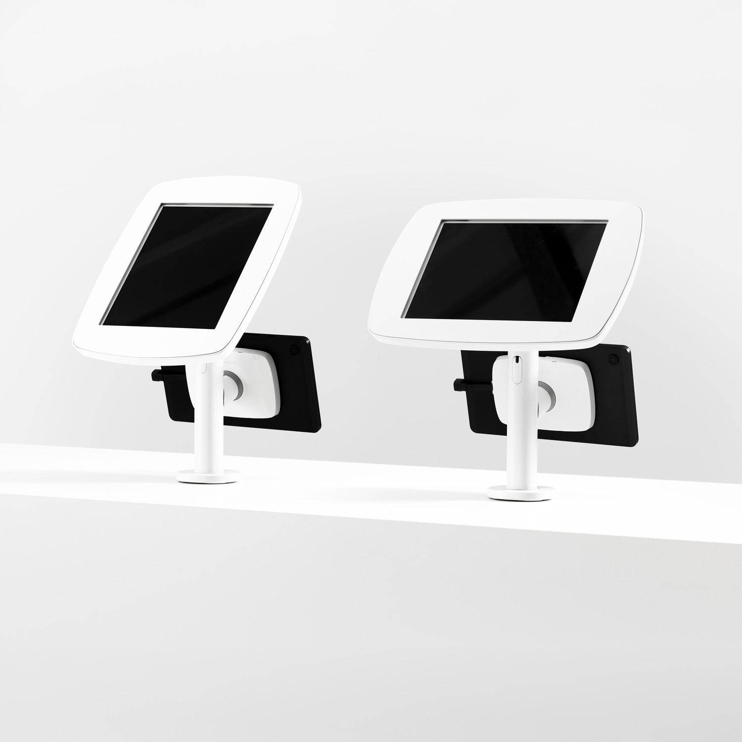 The Bouncepad Original Twin is a secure, ergonomic dual tablet and iPad mount for low-level POS counters.
